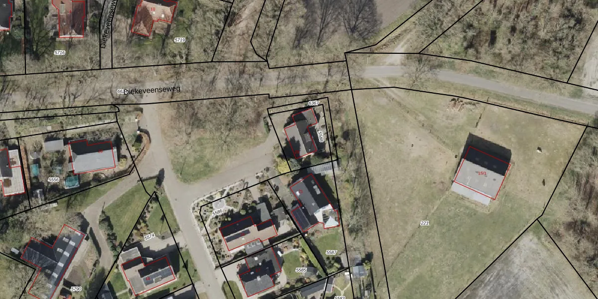 Het perceel waarop het adres ligt is WTB00-D-5588. De afkorting 'WTB00' staat voor kadastrale gemeente Westerbork. Het perceel is 309 m² groot. Dat is kleiner dan de gemiddelde perceeloppervlakte in Westerbork, dat op 1,6 ha ligt. Het grootste perceel in de kadastrale gemeente is 5,08 km². Het kleinste perceel heeft een oppervlakte van 1 m². Dit is het enige adres dat aanwezig is op het perceel. De huidige grenzen van het perceel zijn digitaal in de Basisregistratie Kadaster (BRK) geregistreerd op 18-11-2019.