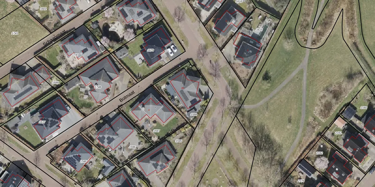 Het perceel waarop Homaat 25 staat heeft een oppervlakte van 595 m². Dit is een groot perceel. De perceeloppervlakte wordt geregistreerd door het Kadaster. Gedetailleerde informatie over de maten van dit perceel kunt u vinden in het rapport Kadastrale kaart met maatvoering van Homaat 25.