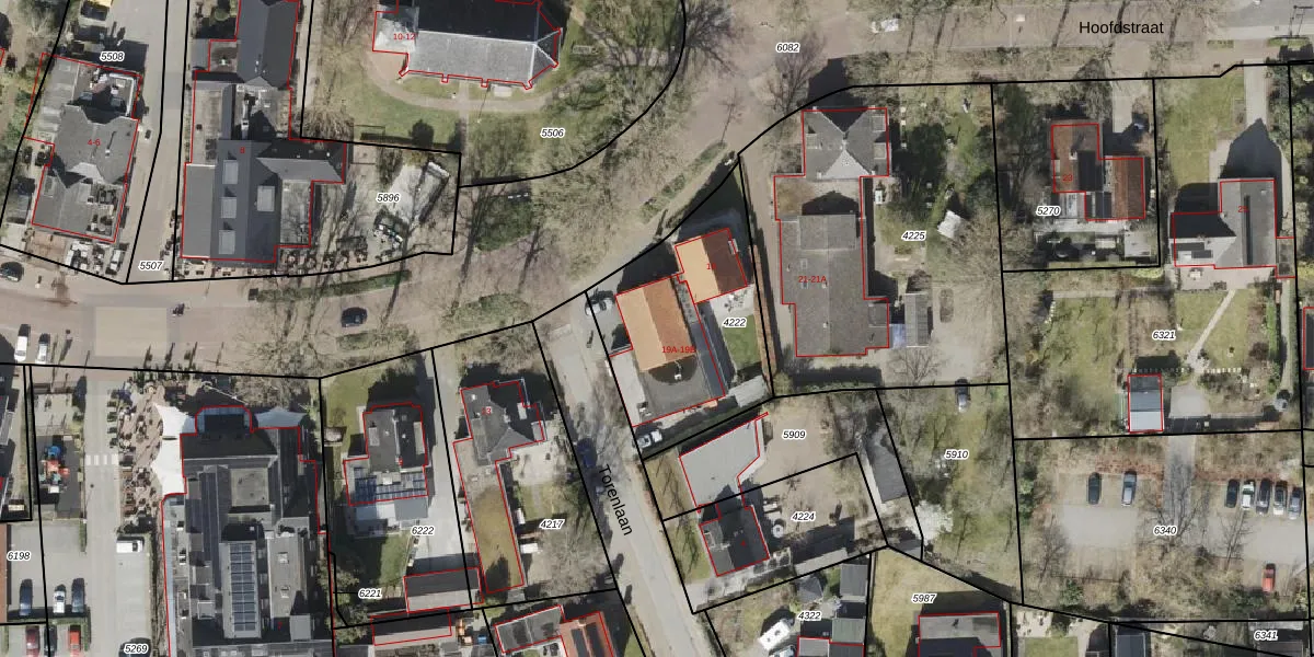 Het perceel waarop Hoofdstraat 19-A staat heeft een oppervlakte van 745 m². Dit is een groot perceel. De perceeloppervlakte wordt geregistreerd door het Kadaster. Gedetailleerde informatie over de maten van dit perceel kunt u vinden in het rapport Kadastrale kaart met maatvoering van Hoofdstraat 19-A.