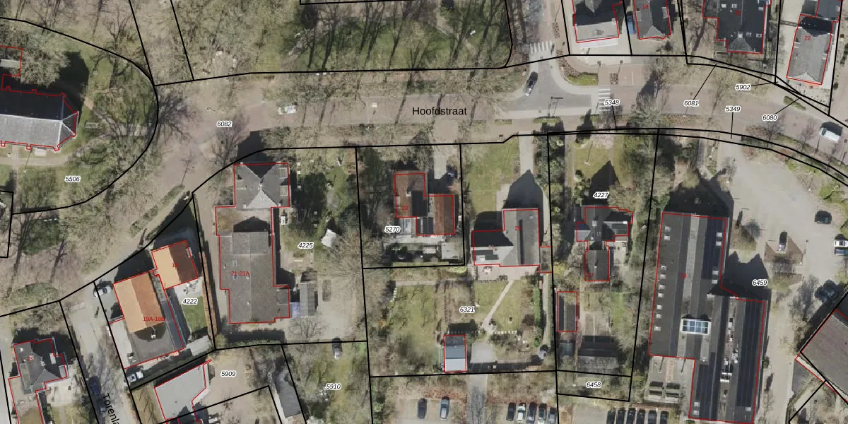 Het perceel waarop Hoofdstraat 23 staat heeft een oppervlakte van 696 m². Dit is een groot perceel. De perceeloppervlakte wordt geregistreerd door het Kadaster. Gedetailleerde informatie over de maten van dit perceel kunt u vinden in het rapport Kadastrale kaart met maatvoering van Hoofdstraat 23.