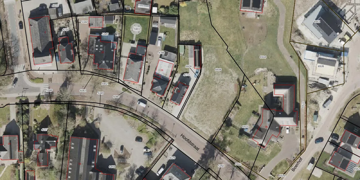 Het perceel waarop Hoofdstraat 26 staat heeft een oppervlakte van 470 m². Dit is een groot perceel. De perceeloppervlakte wordt geregistreerd door het Kadaster. Gedetailleerde informatie over de maten van dit perceel kunt u vinden in het rapport Kadastrale kaart met maatvoering van Hoofdstraat 26.