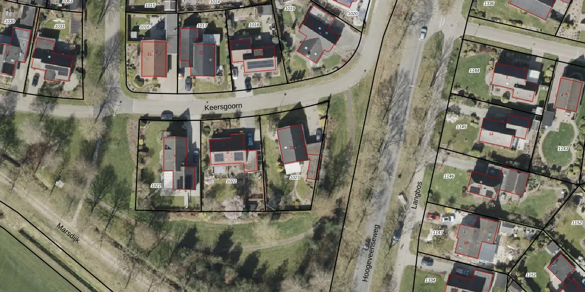 Keersgoorn 10 is gelegen op kadastraal perceel WTB00T1023. Deze kadastrale aanduiding is uniek en wordt gebruikt door het Kadaster om eigendomsrechten en andere zakelijke rechten vast te leggen. Het perceel maakt onderdeel uit van de kadastrale gemeente Westerbork.