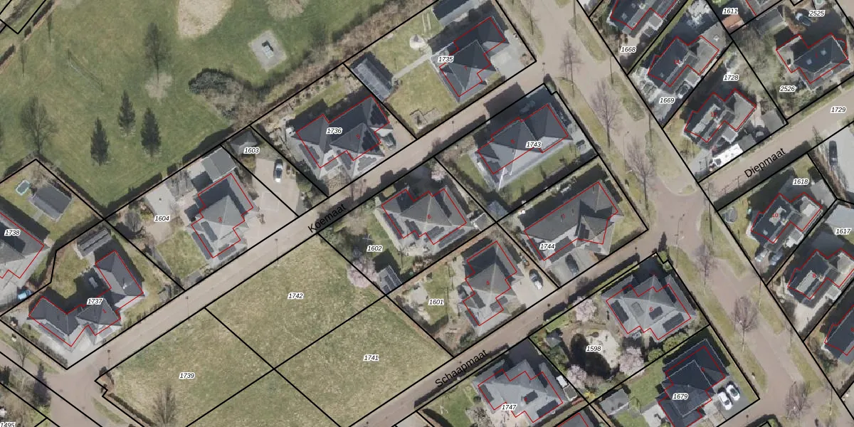 Het perceel waarop Koemaat 6 staat heeft een oppervlakte van 667 m². Dit is een groot perceel. De perceeloppervlakte wordt geregistreerd door het Kadaster. Gedetailleerde informatie over de maten van dit perceel kunt u vinden in het rapport Kadastrale kaart met maatvoering van Koemaat 6.