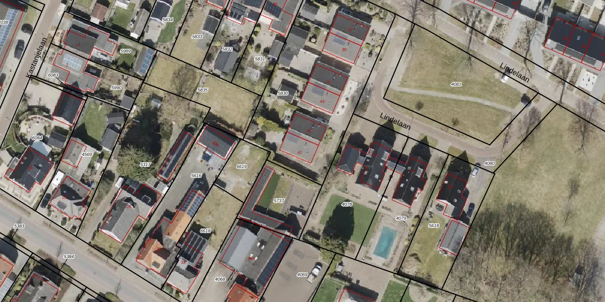 Het perceel waarop Lindelaan 47 staat heeft een oppervlakte van 1834 m². Dit is een zeer groot perceel. De perceeloppervlakte wordt geregistreerd door het Kadaster. Gedetailleerde informatie over de maten van dit perceel kunt u vinden in het rapport Kadastrale kaart met maatvoering van Lindelaan 47.
