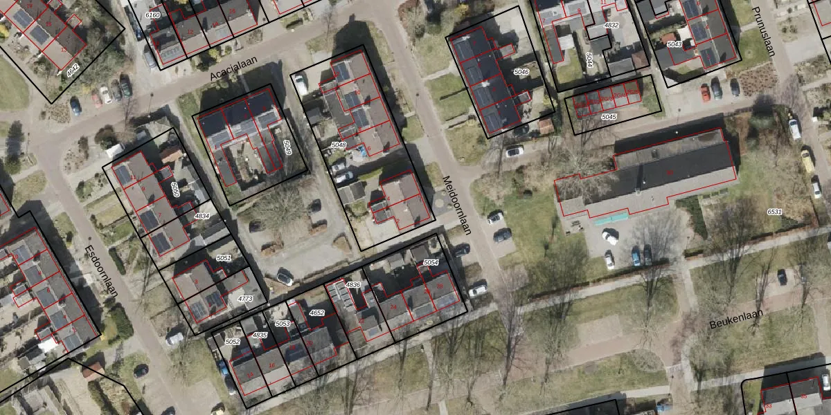 Het perceel waarop Meidoornlaan 2 staat heeft een oppervlakte van 885 m². Dit is een groot perceel. De perceeloppervlakte wordt geregistreerd door het Kadaster. Gedetailleerde informatie over de maten van dit perceel kunt u vinden in het rapport Kadastrale kaart met maatvoering van Meidoornlaan 2.