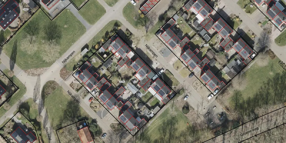 Het perceel waarop Nijkampen 10 staat heeft een oppervlakte van 2563 m². Dit is een zeer groot perceel. De perceeloppervlakte wordt geregistreerd door het Kadaster. Gedetailleerde informatie over de maten van dit perceel kunt u vinden in het rapport Kadastrale kaart met maatvoering van Nijkampen 10.