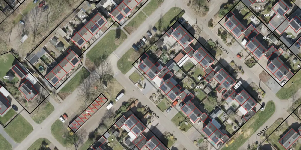 Het perceel waarop Nijkampen 31 staat heeft een oppervlakte van 3353 m². Dit is een zeer groot perceel. De perceeloppervlakte wordt geregistreerd door het Kadaster. Gedetailleerde informatie over de maten van dit perceel kunt u vinden in het rapport Kadastrale kaart met maatvoering van Nijkampen 31.