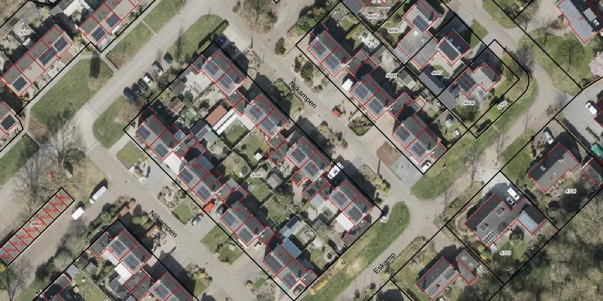 Het perceel waarop Nijkampen 37 staat heeft een oppervlakte van 3353 m². Dit is een zeer groot perceel. De perceeloppervlakte wordt geregistreerd door het Kadaster. Gedetailleerde informatie over de maten van dit perceel kunt u vinden in het rapport Kadastrale kaart met maatvoering van Nijkampen 37.