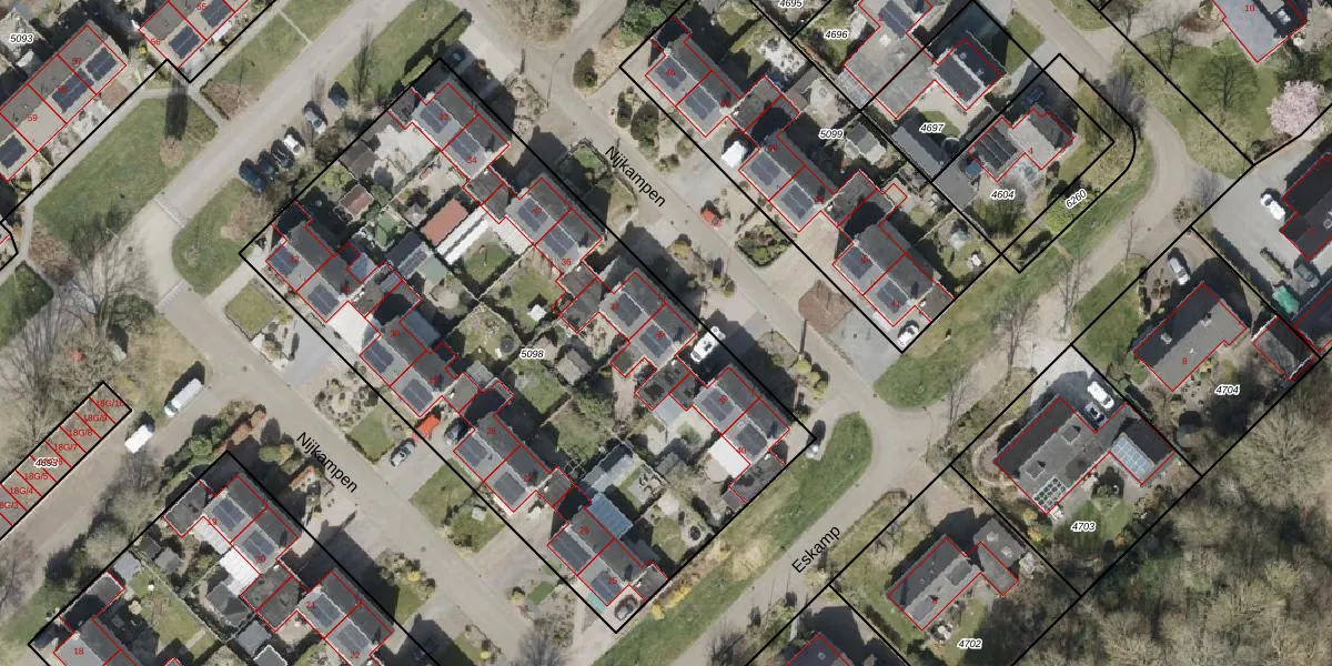 Het perceel waarop Nijkampen 38 staat heeft een oppervlakte van 3353 m². Dit is een zeer groot perceel. De perceeloppervlakte wordt geregistreerd door het Kadaster. Gedetailleerde informatie over de maten van dit perceel kunt u vinden in het rapport Kadastrale kaart met maatvoering van Nijkampen 38.