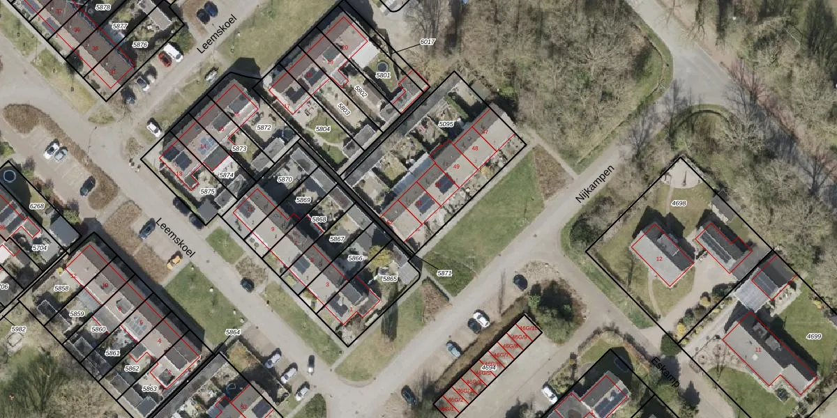 Het perceel waarop Nijkampen 51 staat heeft een oppervlakte van 924 m². Dit is een groot perceel. De perceeloppervlakte wordt geregistreerd door het Kadaster. Gedetailleerde informatie over de maten van dit perceel kunt u vinden in het rapport Kadastrale kaart met maatvoering van Nijkampen 51.