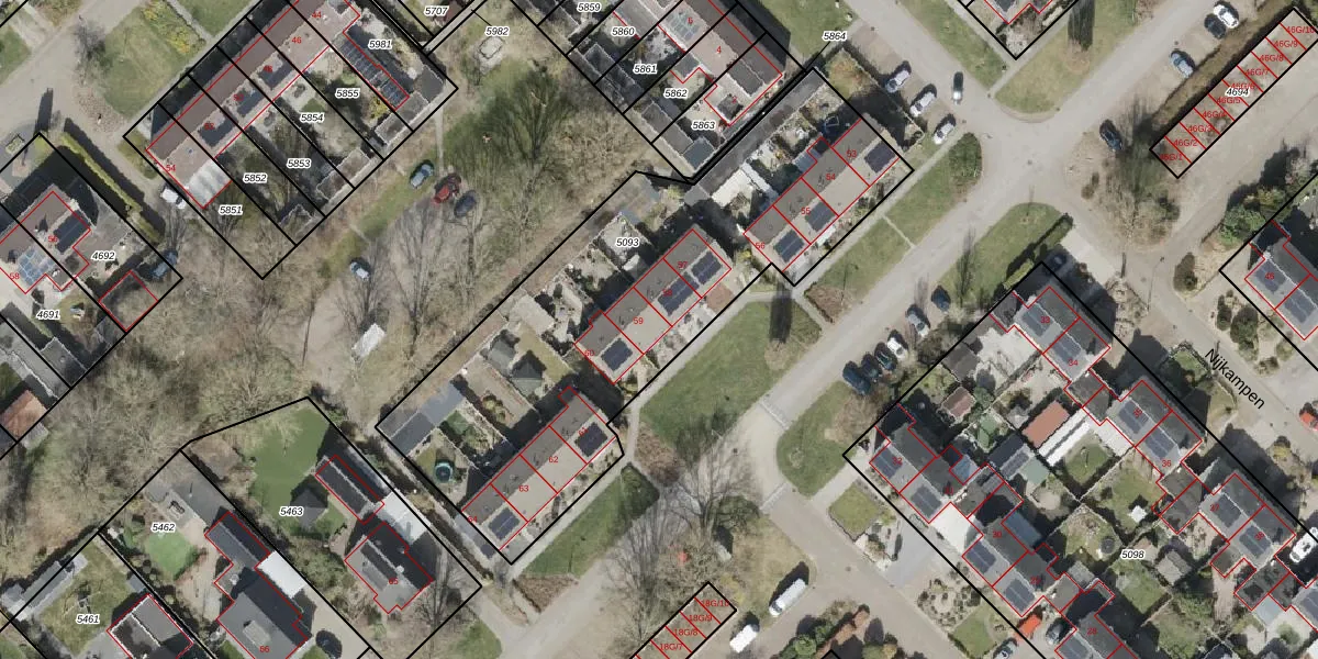 Het perceel waarop Nijkampen 59 staat heeft een oppervlakte van 2121 m². Dit is een zeer groot perceel. De perceeloppervlakte wordt geregistreerd door het Kadaster. Gedetailleerde informatie over de maten van dit perceel kunt u vinden in het rapport Kadastrale kaart met maatvoering van Nijkampen 59.