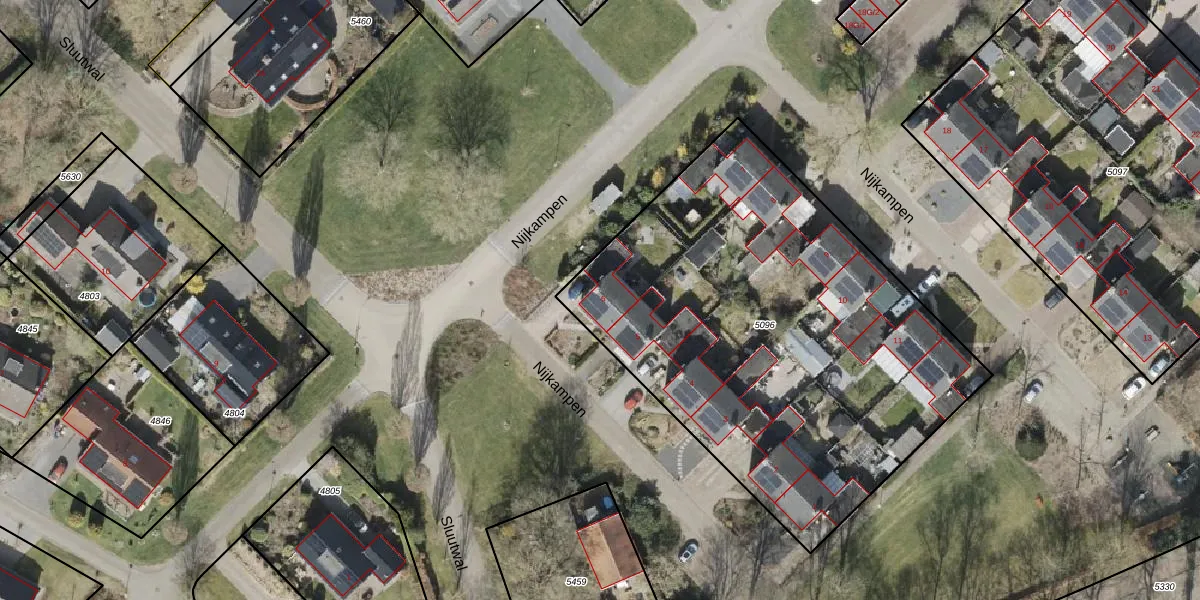 Het perceel waarop Nijkampen 6 staat heeft een oppervlakte van 2563 m². Dit is een zeer groot perceel. De perceeloppervlakte wordt geregistreerd door het Kadaster. Gedetailleerde informatie over de maten van dit perceel kunt u vinden in het rapport Kadastrale kaart met maatvoering van Nijkampen 6.