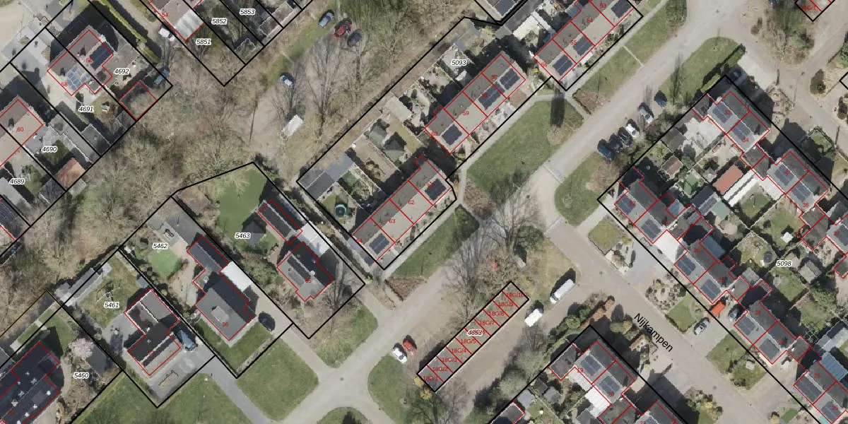 Het perceel waarop Nijkampen 62 staat heeft een oppervlakte van 2121 m². Dit is een zeer groot perceel. De perceeloppervlakte wordt geregistreerd door het Kadaster. Gedetailleerde informatie over de maten van dit perceel kunt u vinden in het rapport Kadastrale kaart met maatvoering van Nijkampen 62.