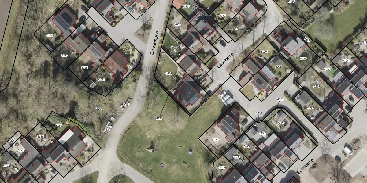 Het perceel waarop Oldekamp 12 staat heeft een oppervlakte van 477 m². Dit is een groot perceel. De perceeloppervlakte wordt geregistreerd door het Kadaster. Gedetailleerde informatie over de maten van dit perceel kunt u vinden in het rapport Kadastrale kaart met maatvoering van Oldekamp 12.