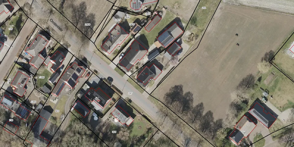 Het perceel waarop Oosteinde 18 staat heeft een oppervlakte van 1780 m². Dit is een zeer groot perceel. De perceeloppervlakte wordt geregistreerd door het Kadaster. Gedetailleerde informatie over de maten van dit perceel kunt u vinden in het rapport Kadastrale kaart met maatvoering van Oosteinde 18.