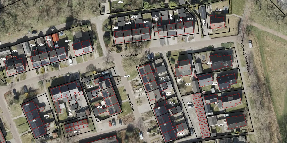 Het perceel waarop Prunuslaan 15 staat heeft een oppervlakte van 368 m². Dit is een groot perceel. De perceeloppervlakte wordt geregistreerd door het Kadaster. Gedetailleerde informatie over de maten van dit perceel kunt u vinden in het rapport Kadastrale kaart met maatvoering van Prunuslaan 15.
