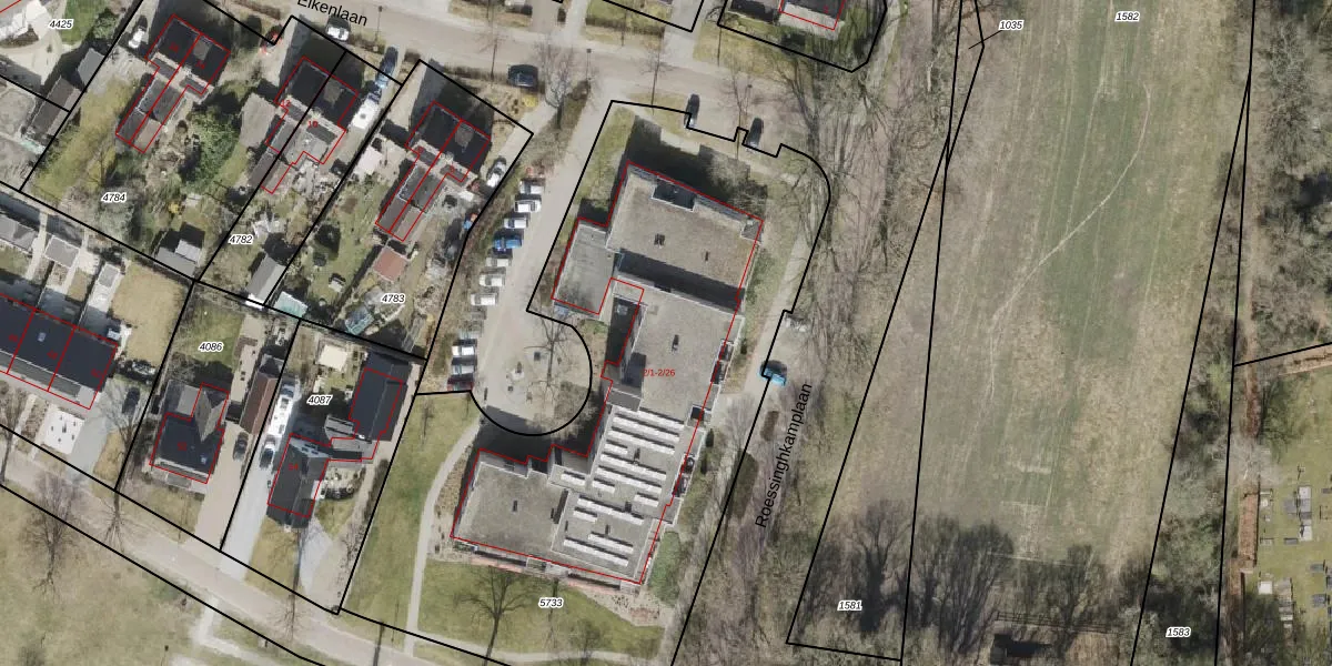 Het perceel waarop Roessinghkamplaan 2-2 staat heeft een oppervlakte van 3423 m². Dit is een zeer groot perceel. De perceeloppervlakte wordt geregistreerd door het Kadaster. Gedetailleerde informatie over de maten van dit perceel kunt u vinden in het rapport Kadastrale kaart met maatvoering van Roessinghkamplaan 2-2.