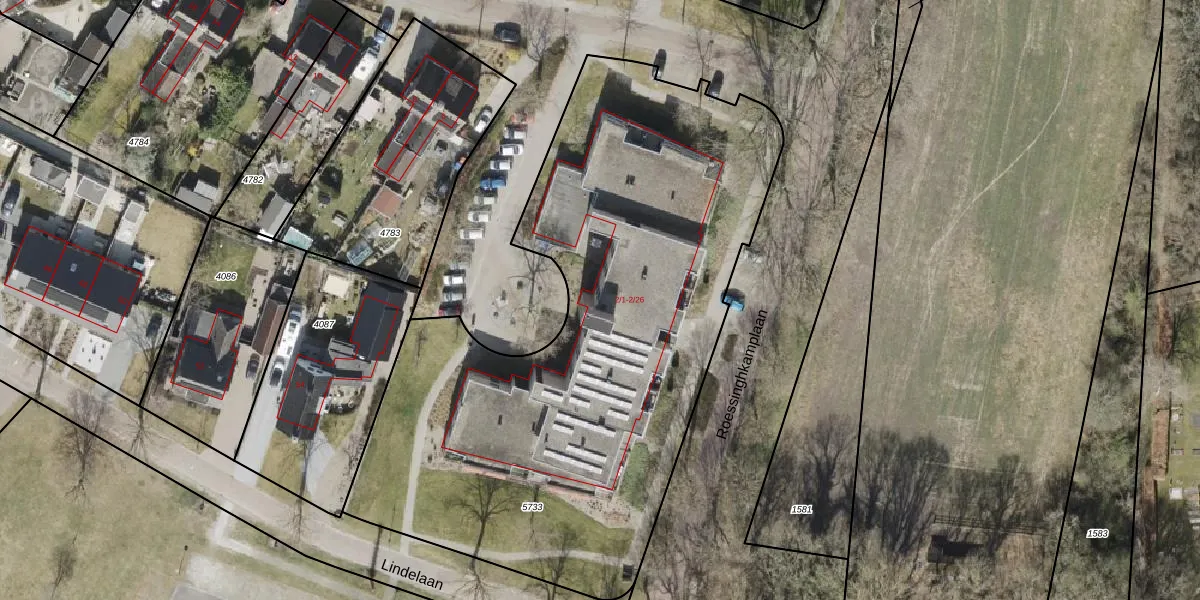 Het perceel waarop Roessinghkamplaan 2-22 staat heeft een oppervlakte van 3423 m². Dit is een zeer groot perceel. De perceeloppervlakte wordt geregistreerd door het Kadaster. Gedetailleerde informatie over de maten van dit perceel kunt u vinden in het rapport Kadastrale kaart met maatvoering van Roessinghkamplaan 2-22.