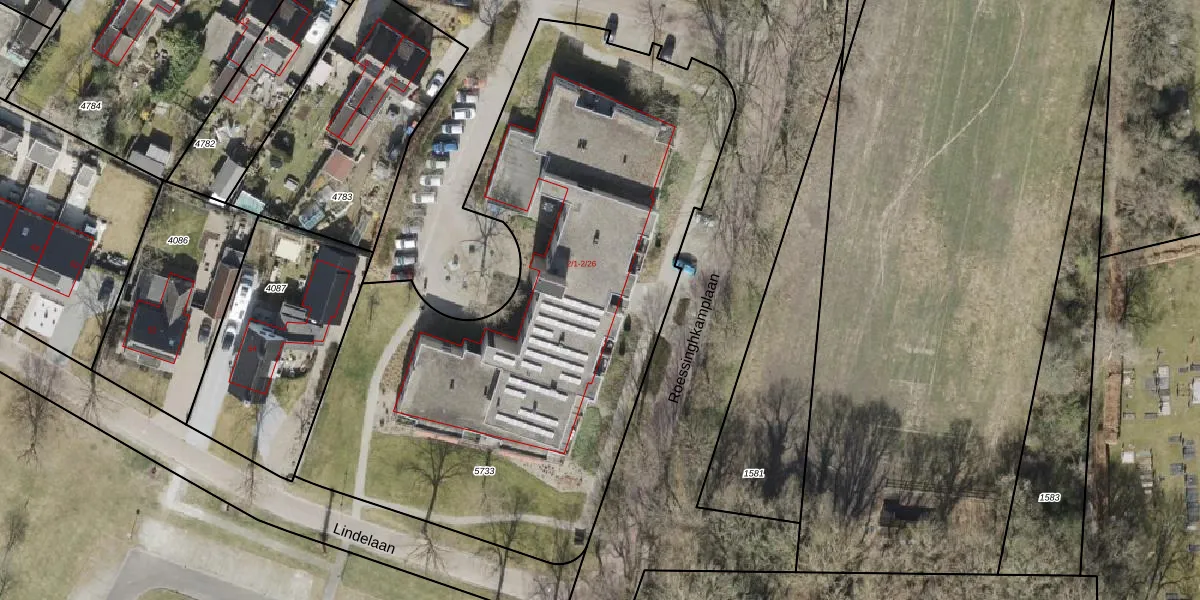Het perceel waarop Roessinghkamplaan 2-25 staat heeft een oppervlakte van 3423 m². Dit is een zeer groot perceel. De perceeloppervlakte wordt geregistreerd door het Kadaster. Gedetailleerde informatie over de maten van dit perceel kunt u vinden in het rapport Kadastrale kaart met maatvoering van Roessinghkamplaan 2-25.