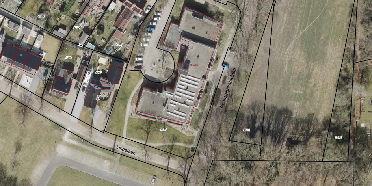Het perceel waarop Roessinghkamplaan 2-4 staat heeft een oppervlakte van 3423 m². Dit is een zeer groot perceel. De perceeloppervlakte wordt geregistreerd door het Kadaster. Gedetailleerde informatie over de maten van dit perceel kunt u vinden in het rapport Kadastrale kaart met maatvoering van Roessinghkamplaan 2-4.