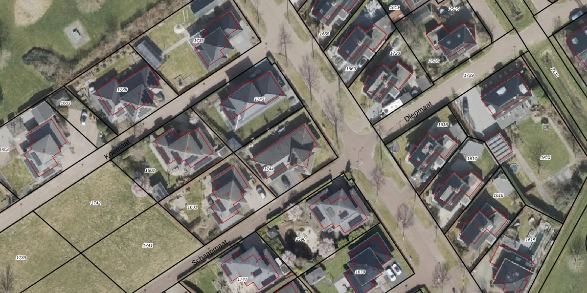 Het perceel waarop Schaapmaat 7 staat heeft een oppervlakte van 563 m². Dit is een groot perceel. De perceeloppervlakte wordt geregistreerd door het Kadaster. Gedetailleerde informatie over de maten van dit perceel kunt u vinden in het rapport Kadastrale kaart met maatvoering van Schaapmaat 7.