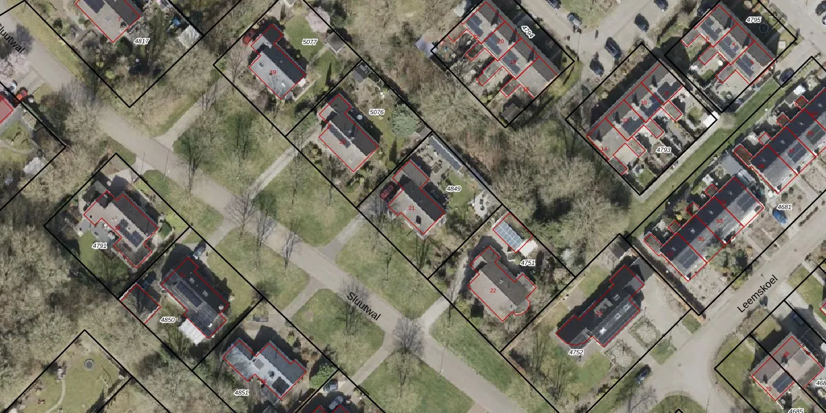 Het perceel waarop Sluutwal 21 staat heeft een oppervlakte van 642 m². Dit is een groot perceel. De perceeloppervlakte wordt geregistreerd door het Kadaster. Gedetailleerde informatie over de maten van dit perceel kunt u vinden in het rapport Kadastrale kaart met maatvoering van Sluutwal 21.