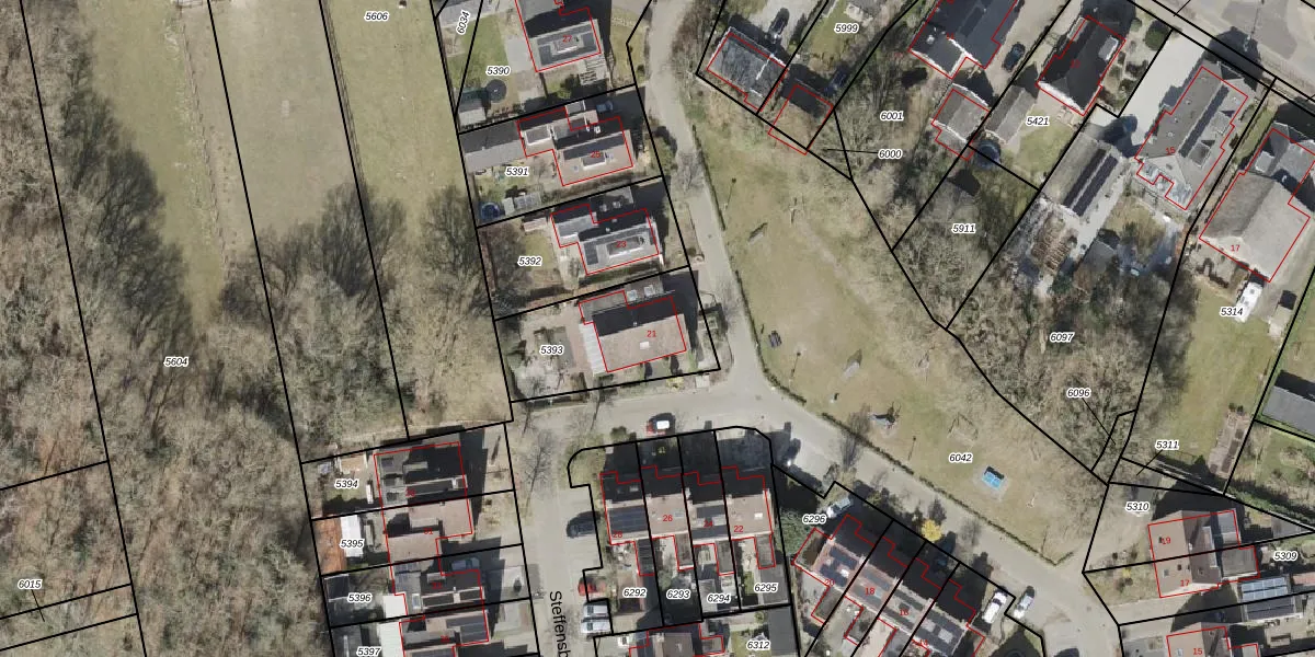 Het perceel waarop Steffensberg 21 staat heeft een oppervlakte van 456 m². Dit is een groot perceel. De perceeloppervlakte wordt geregistreerd door het Kadaster. Gedetailleerde informatie over de maten van dit perceel kunt u vinden in het rapport Kadastrale kaart met maatvoering van Steffensberg 21.