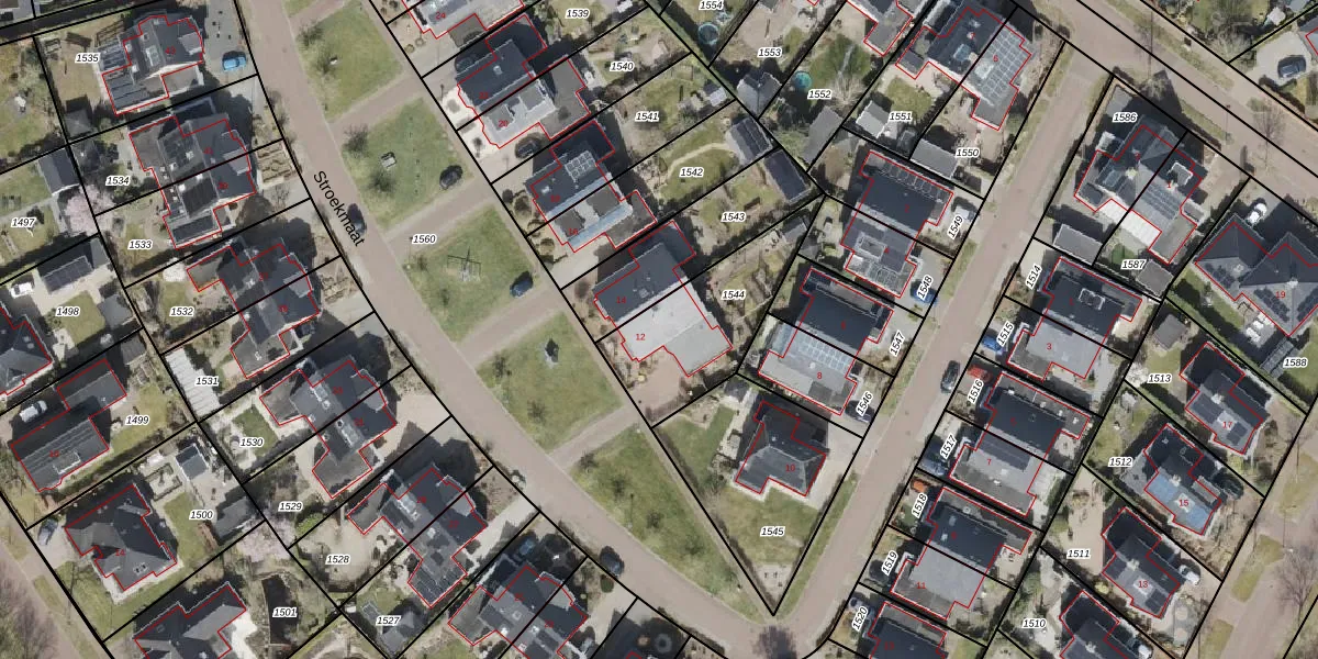 Het perceel waarop Stroekmaat 12 staat heeft een oppervlakte van 450 m². Dit is een groot perceel. De perceeloppervlakte wordt geregistreerd door het Kadaster. Gedetailleerde informatie over de maten van dit perceel kunt u vinden in het rapport Kadastrale kaart met maatvoering van Stroekmaat 12.