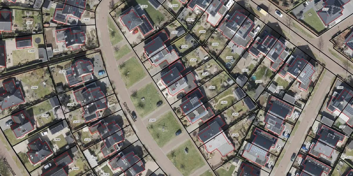 Het perceel waarop Stroekmaat 20 staat heeft een oppervlakte van 343 m². Dit is een groot perceel. De perceeloppervlakte wordt geregistreerd door het Kadaster. Gedetailleerde informatie over de maten van dit perceel kunt u vinden in het rapport Kadastrale kaart met maatvoering van Stroekmaat 20.