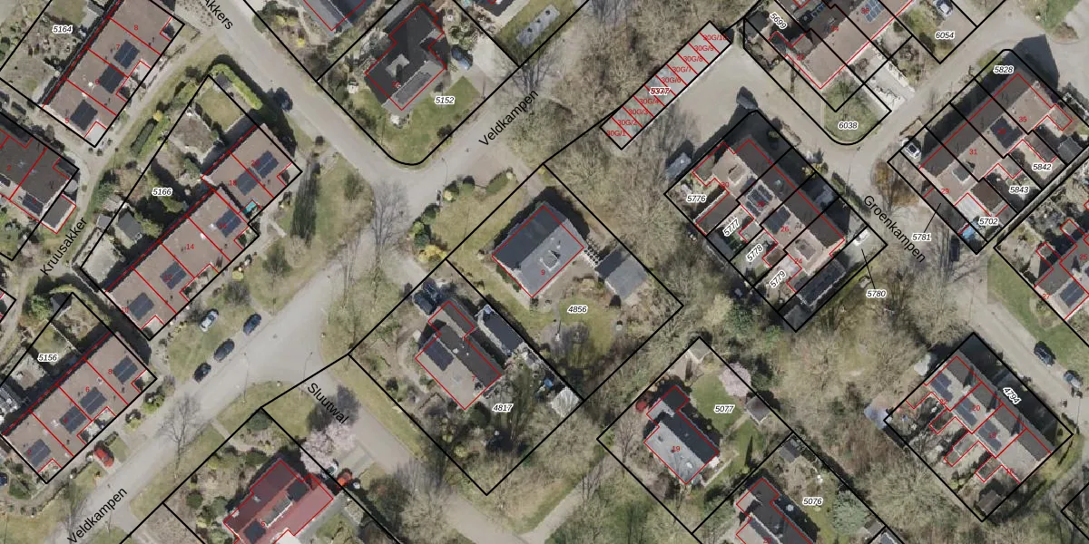 Het perceel waarop Veldkampen 9 staat heeft een oppervlakte van 915 m². Dit is een groot perceel. De perceeloppervlakte wordt geregistreerd door het Kadaster. Gedetailleerde informatie over de maten van dit perceel kunt u vinden in het rapport Kadastrale kaart met maatvoering van Veldkampen 9.