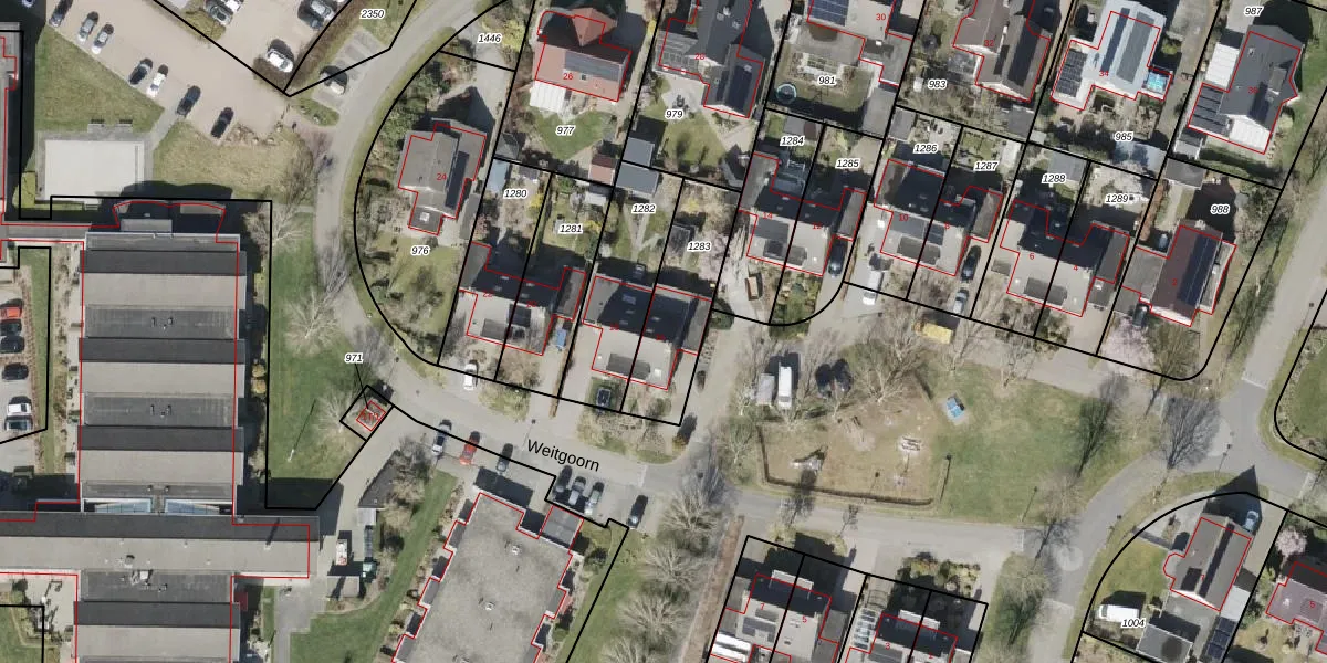 Het perceel waarop Weitgoorn 16 staat heeft een oppervlakte van 332 m². Dit is een groot perceel. De perceeloppervlakte wordt geregistreerd door het Kadaster. Gedetailleerde informatie over de maten van dit perceel kunt u vinden in het rapport Kadastrale kaart met maatvoering van Weitgoorn 16.