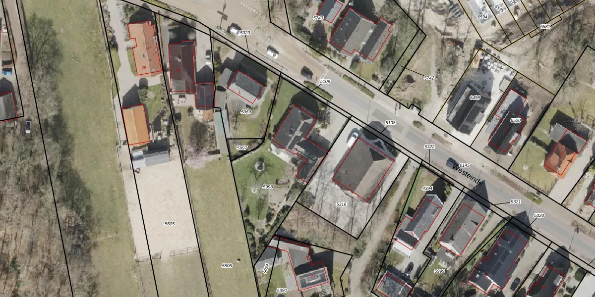 Het perceel waarop Westeinde 3 staat heeft een oppervlakte van 1112 m². Dit is een zeer groot perceel. De perceeloppervlakte wordt geregistreerd door het Kadaster. Gedetailleerde informatie over de maten van dit perceel kunt u vinden in het rapport Kadastrale kaart met maatvoering van Westeinde 3.