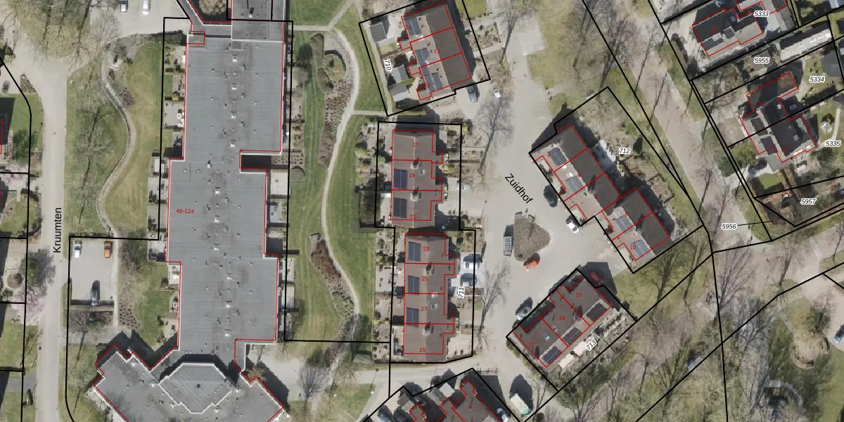 Het perceel waarop Zuidhof 21 staat heeft een oppervlakte van 1100 m². Dit is een zeer groot perceel. De perceeloppervlakte wordt geregistreerd door het Kadaster. Gedetailleerde informatie over de maten van dit perceel kunt u vinden in het rapport Kadastrale kaart met maatvoering van Zuidhof 21.