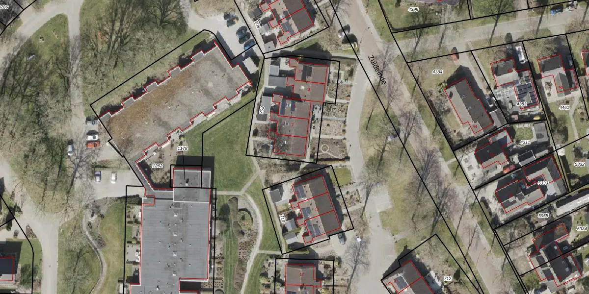 Het perceel waarop Zuidhof 9 staat heeft een oppervlakte van 875 m². Dit is een groot perceel. De perceeloppervlakte wordt geregistreerd door het Kadaster. Gedetailleerde informatie over de maten van dit perceel kunt u vinden in het rapport Kadastrale kaart met maatvoering van Zuidhof 9.