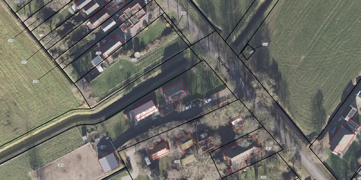 Het perceel waarop Borgweg 55 staat heeft een oppervlakte van 4639 m². Dit is een zeer groot perceel. De perceeloppervlakte wordt geregistreerd door het Kadaster. Gedetailleerde informatie over de maten van dit perceel kunt u vinden in het rapport Kadastrale kaart met maatvoering van Borgweg 55.