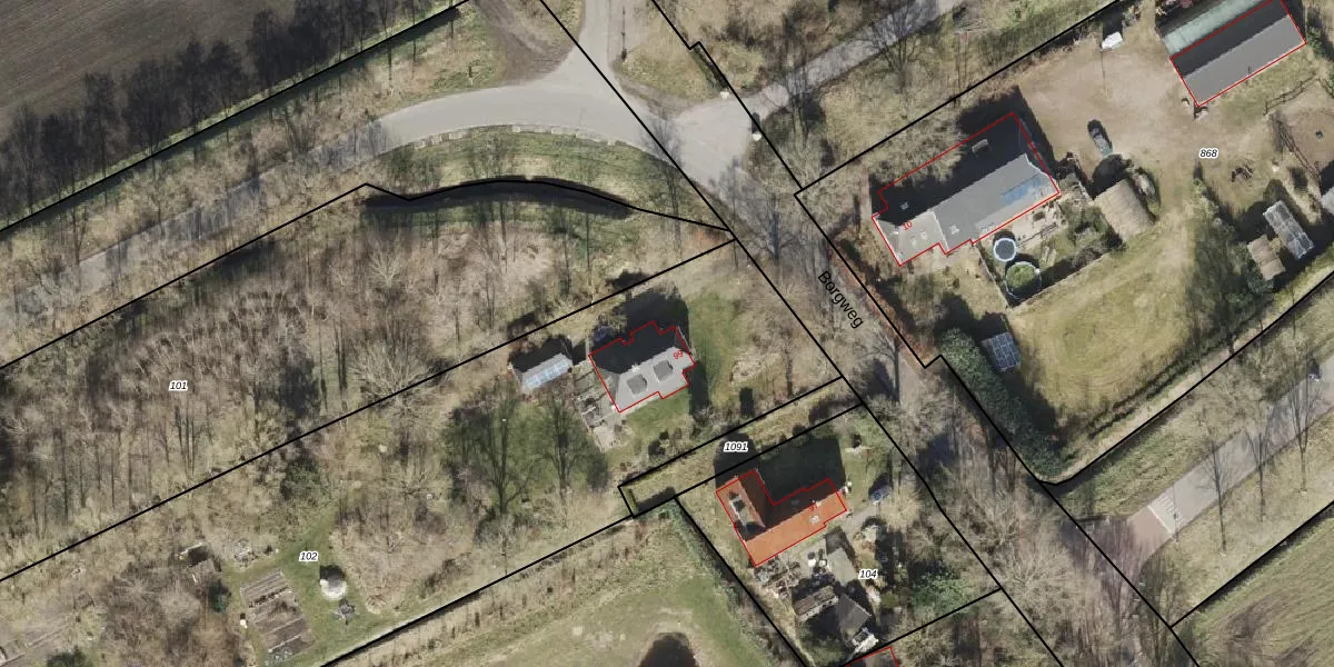Het perceel waarop Borgweg 99 staat heeft een oppervlakte van 4918 m². Dit is een zeer groot perceel. De perceeloppervlakte wordt geregistreerd door het Kadaster. Gedetailleerde informatie over de maten van dit perceel kunt u vinden in het rapport Kadastrale kaart met maatvoering van Borgweg 99.