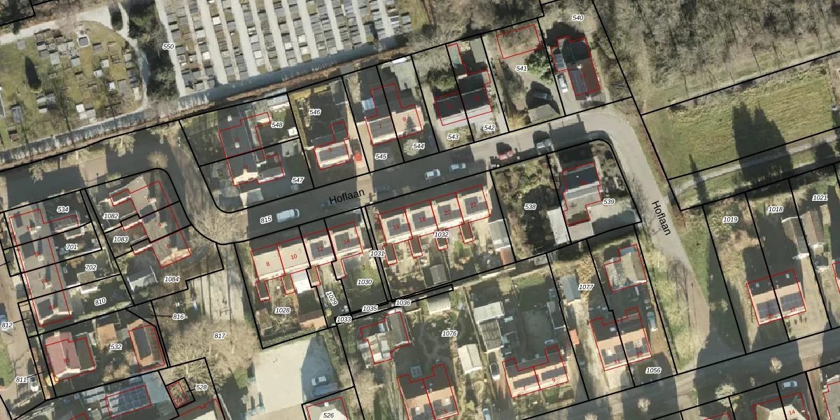 Het perceel waarop Hoflaan 18 staat heeft een oppervlakte van 715 m². Dit is een groot perceel. De perceeloppervlakte wordt geregistreerd door het Kadaster. Gedetailleerde informatie over de maten van dit perceel kunt u vinden in het rapport Kadastrale kaart met maatvoering van Hoflaan 18.