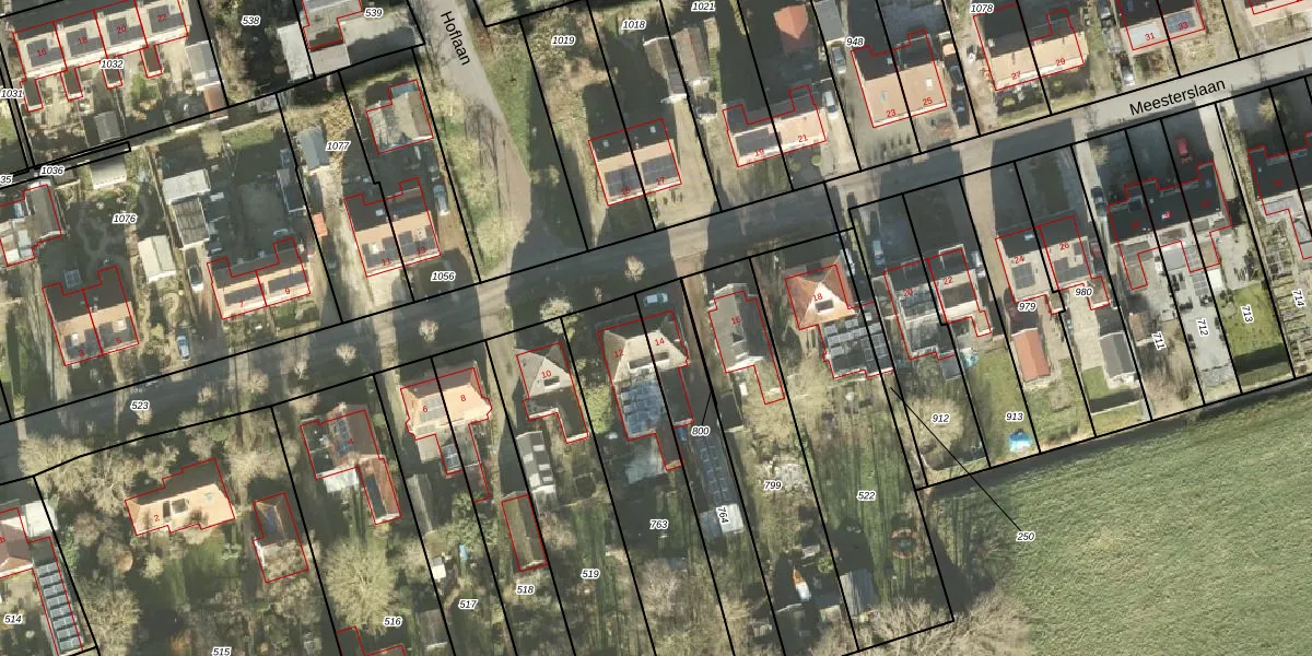 Het perceel waarop Meesterslaan 14 staat heeft een oppervlakte van 457 m². Dit is een groot perceel. De perceeloppervlakte wordt geregistreerd door het Kadaster. Gedetailleerde informatie over de maten van dit perceel kunt u vinden in het rapport Kadastrale kaart met maatvoering van Meesterslaan 14.