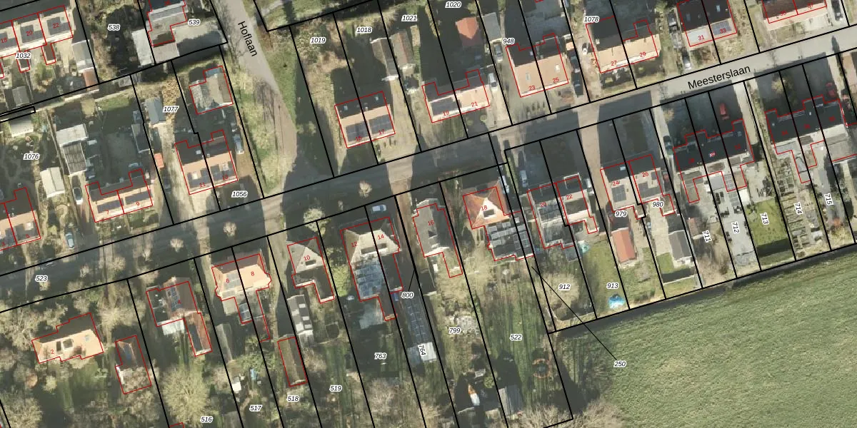Gebruik de zoekbalk of klik op een perceel voor informatie over de adressen binnen dit perceel.