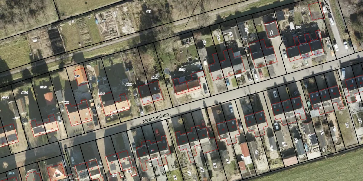 Het perceel waarop Meesterslaan 35 staat heeft een oppervlakte van 819 m². Dit is een groot perceel. De perceeloppervlakte wordt geregistreerd door het Kadaster. Gedetailleerde informatie over de maten van dit perceel kunt u vinden in het rapport Kadastrale kaart met maatvoering van Meesterslaan 35.