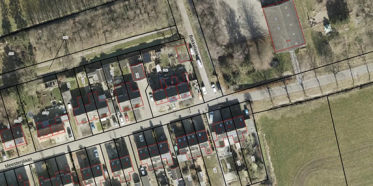 Het perceel waarop Meesterslaan 51 staat heeft een oppervlakte van 976 m². Dit is een groot perceel. De perceeloppervlakte wordt geregistreerd door het Kadaster. Gedetailleerde informatie over de maten van dit perceel kunt u vinden in het rapport Kadastrale kaart met maatvoering van Meesterslaan 51.