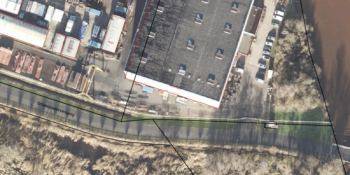 Het perceel waarop Scheepswervenweg 7-a-13 staat heeft een oppervlakte van 9500 m². Dit is een zeer groot perceel. De perceeloppervlakte wordt geregistreerd door het Kadaster. Gedetailleerde informatie over de maten van dit perceel kunt u vinden in het rapport Kadastrale kaart met maatvoering van Scheepswervenweg 7-a-13.
