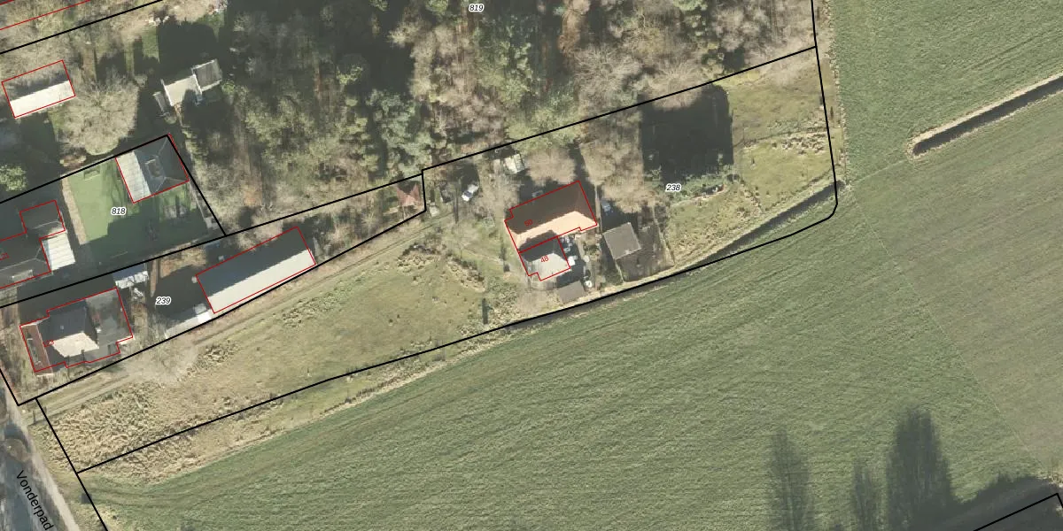 Het perceel waarop Vonderpad 48 staat heeft een oppervlakte van 4021 m². Dit is een zeer groot perceel. De perceeloppervlakte wordt geregistreerd door het Kadaster. Gedetailleerde informatie over de maten van dit perceel kunt u vinden in het rapport Kadastrale kaart met maatvoering van Vonderpad 48.