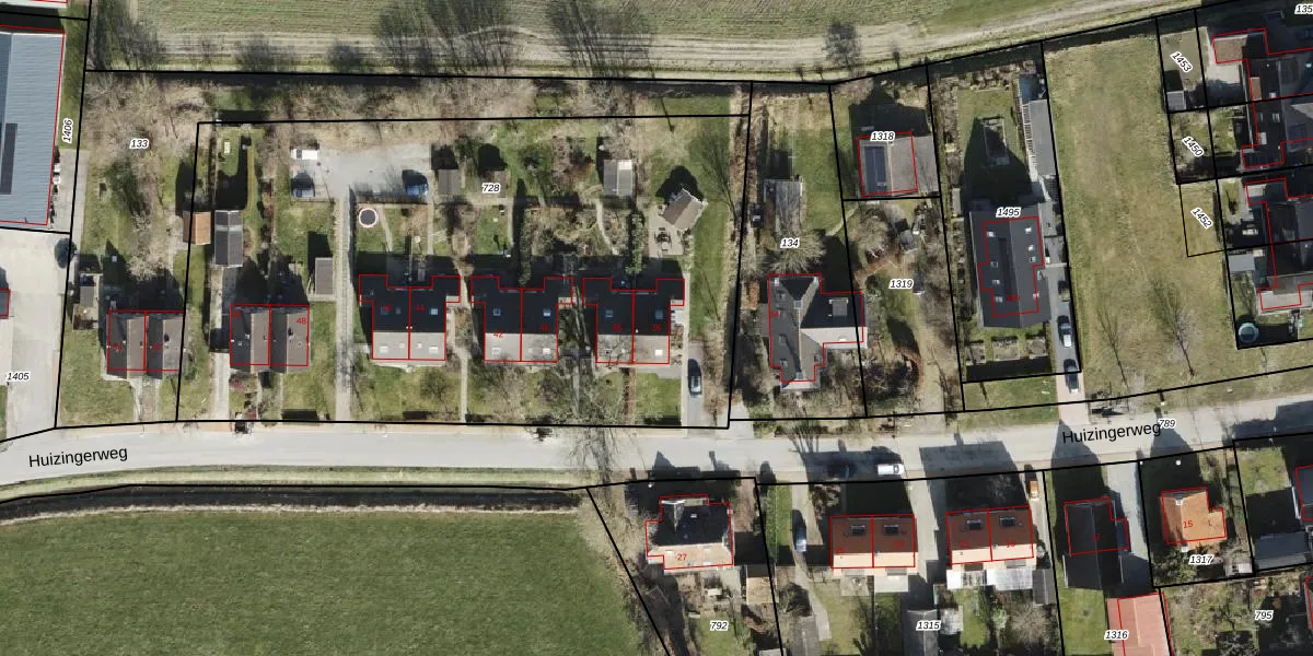 Het perceel waarop Huizingerweg 36 staat heeft een oppervlakte van 3903 m². Dit is een zeer groot perceel. De perceeloppervlakte wordt geregistreerd door het Kadaster. Gedetailleerde informatie over de maten van dit perceel kunt u vinden in het rapport Kadastrale kaart met maatvoering van Huizingerweg 36.