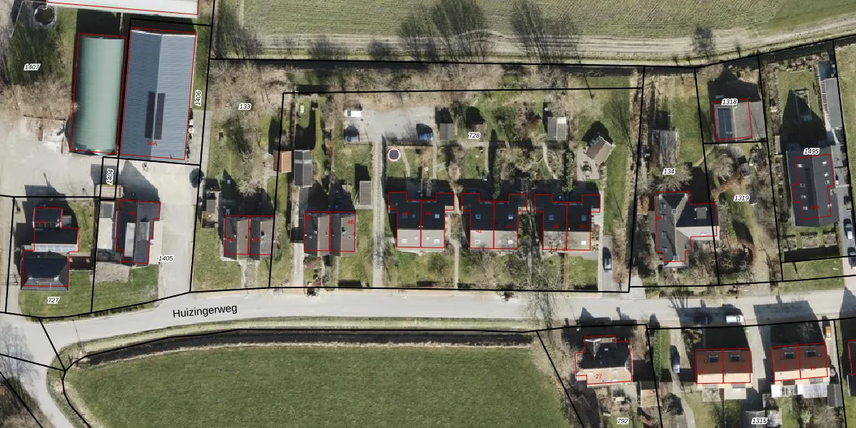 Het perceel waarop Huizingerweg 44 staat heeft een oppervlakte van 3903 m². Dit is een zeer groot perceel. De perceeloppervlakte wordt geregistreerd door het Kadaster. Gedetailleerde informatie over de maten van dit perceel kunt u vinden in het rapport Kadastrale kaart met maatvoering van Huizingerweg 44.