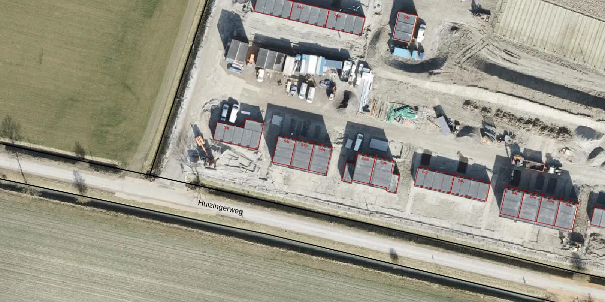 Het perceel waarop Huizingerweg 64-p staat heeft een oppervlakte van 5,3 ha. Dit is een zeer groot perceel. De perceeloppervlakte wordt geregistreerd door het Kadaster. Gedetailleerde informatie over de maten van dit perceel kunt u vinden in het rapport Kadastrale kaart met maatvoering van Huizingerweg 64-p.