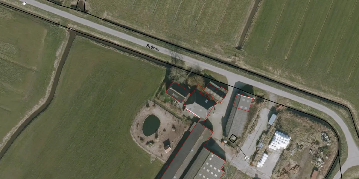 Het perceel waarop Bréwei 1 staat heeft een oppervlakte van 7,5 ha. Dit is een zeer groot perceel. De perceeloppervlakte wordt geregistreerd door het Kadaster. Gedetailleerde informatie over de maten van dit perceel kunt u vinden in het rapport Kadastrale kaart met maatvoering van Bréwei 1.