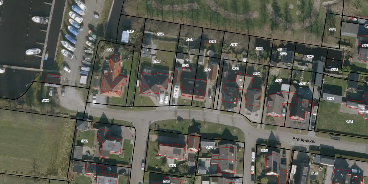 Brede-ikker 12 is gelegen op kadastraal perceel WTG01B2754. Deze kadastrale aanduiding is uniek en wordt gebruikt door het Kadaster om eigendomsrechten en andere zakelijke rechten vast te leggen. Het perceel maakt onderdeel uit van de kadastrale gemeente Westergeest.