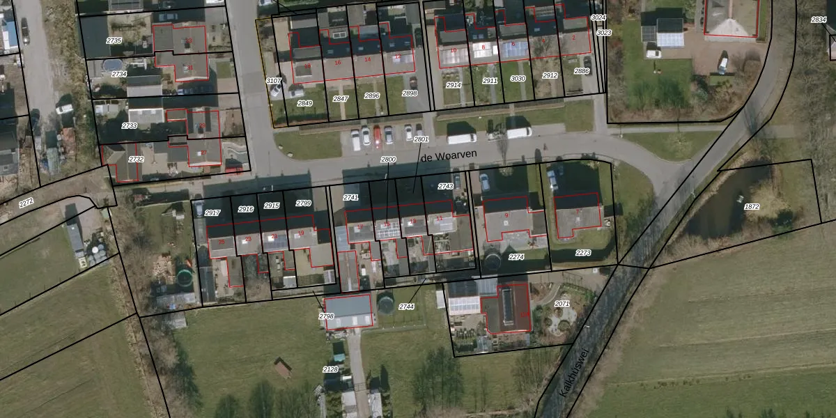 Het perceel waarop de Woarven 13 staat heeft een oppervlakte van 148 m². Dit is een middelgroot perceel. De perceeloppervlakte wordt geregistreerd door het Kadaster. Gedetailleerde informatie over de maten van dit perceel kunt u vinden in het rapport Kadastrale kaart met maatvoering van de Woarven 13.