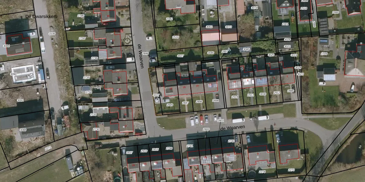 Gebruik de zoekbalk of klik op een perceel voor informatie over de adressen binnen dit perceel.